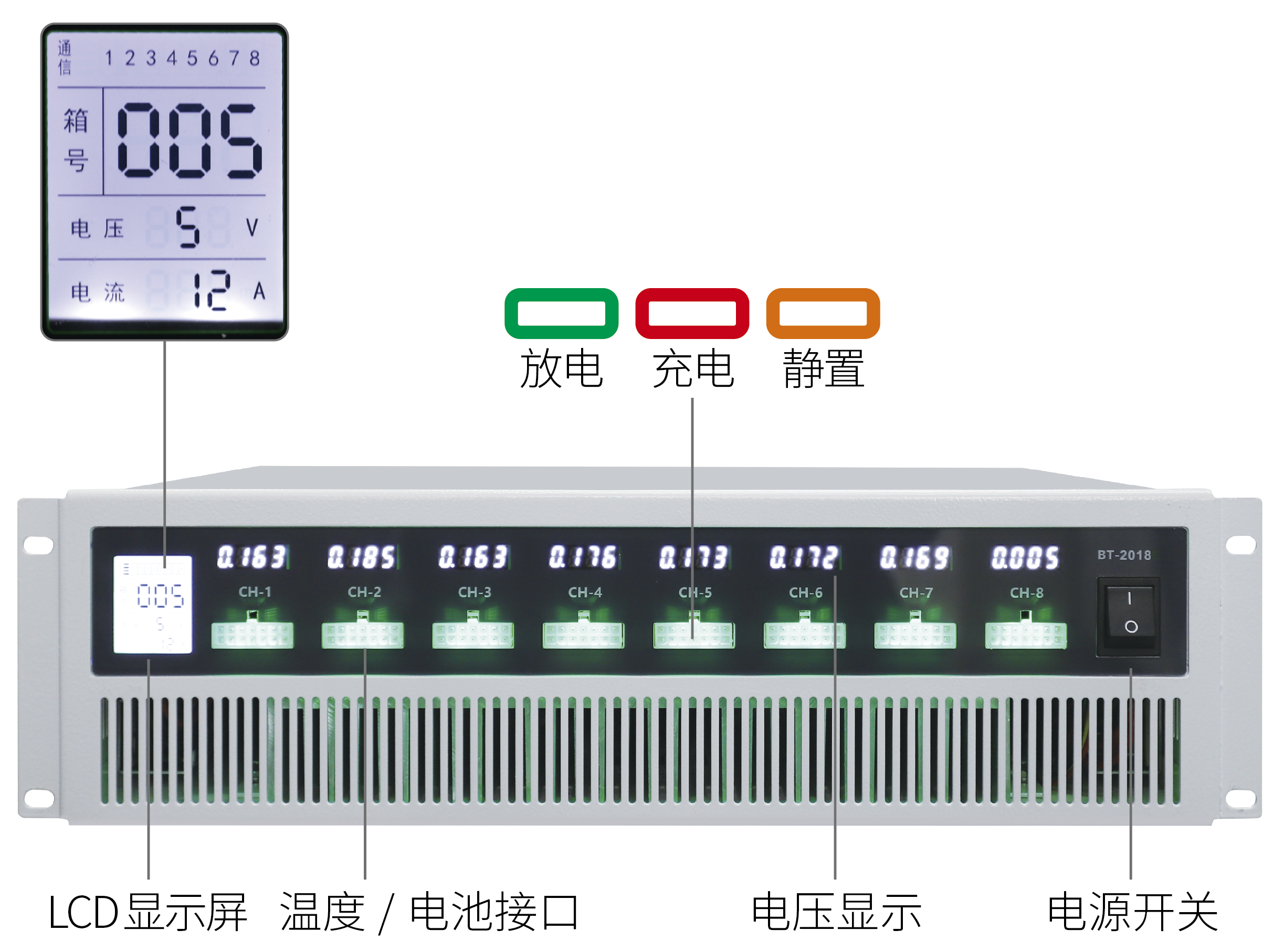 此款產品BT2018B溫度款,專為固態電池/鈉電池/聚合物電池檢測而研發出來。該產品與高低溫箱或高溫房配合使用。具有以下特點: