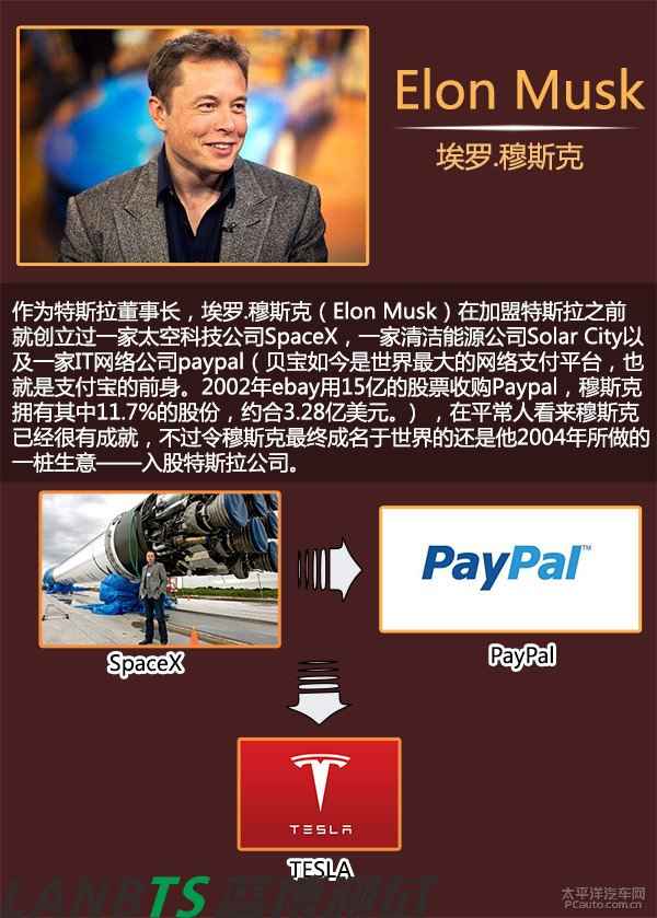 2003年7月1日,馬丁·艾伯哈德與長期商業伙伴馬克·塔彭寧合伙成立特斯拉(TESLA)汽車公司。但由于艾伯哈德毫無這方面的制造經驗,最終找到AC Propulsion公司。在AC Propulsion公司CEO的引見下,穆斯克認識了艾伯哈德的團隊并向TESLA投資630萬美元,最終出任公司董事長、擁有所有事務的最終決定權。但是后來由于艾伯哈德與高層管理的矛盾激化,于是被迫要求離開公司,他本人只作為特斯拉公司的一個股東存在。而穆斯克當任董事兼CEO全面掌握了特斯拉并帶領著特斯拉走上了一條汽車革命者的道路。