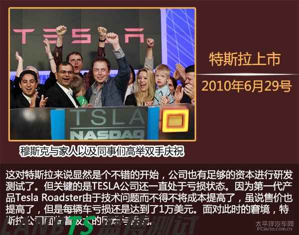 可以說,這三筆錢把Tesla從懸崖邊拉了回來。在熬過這段艱難的時光后,Tesla的資金情況逐漸好轉。2010年特斯拉在納斯達克上市,融資額達2.26億美元。開盤當日,穆斯克也在帳面上力挽狂瀾地賺了6億3千萬美元。而上市之后,特斯拉股價在一周之內飆升40%,市值一度超過100億美元,將老牌汽車公司菲亞特、三菱甩在身后。