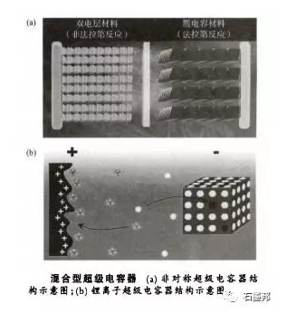 混合型超級電容器一般是指由不同類型正負極電極材料組成的器件:一極是含贗電容電池材料,另一極是雙電層電容器材料?;旌闲团K電容器結合了雙電層材料的快速充放電和贗電容的高能m密度的特性,可同時具有高功率密度和高能量密度,彌補了在電池和超級電容器兩者不可兼得的空缺。